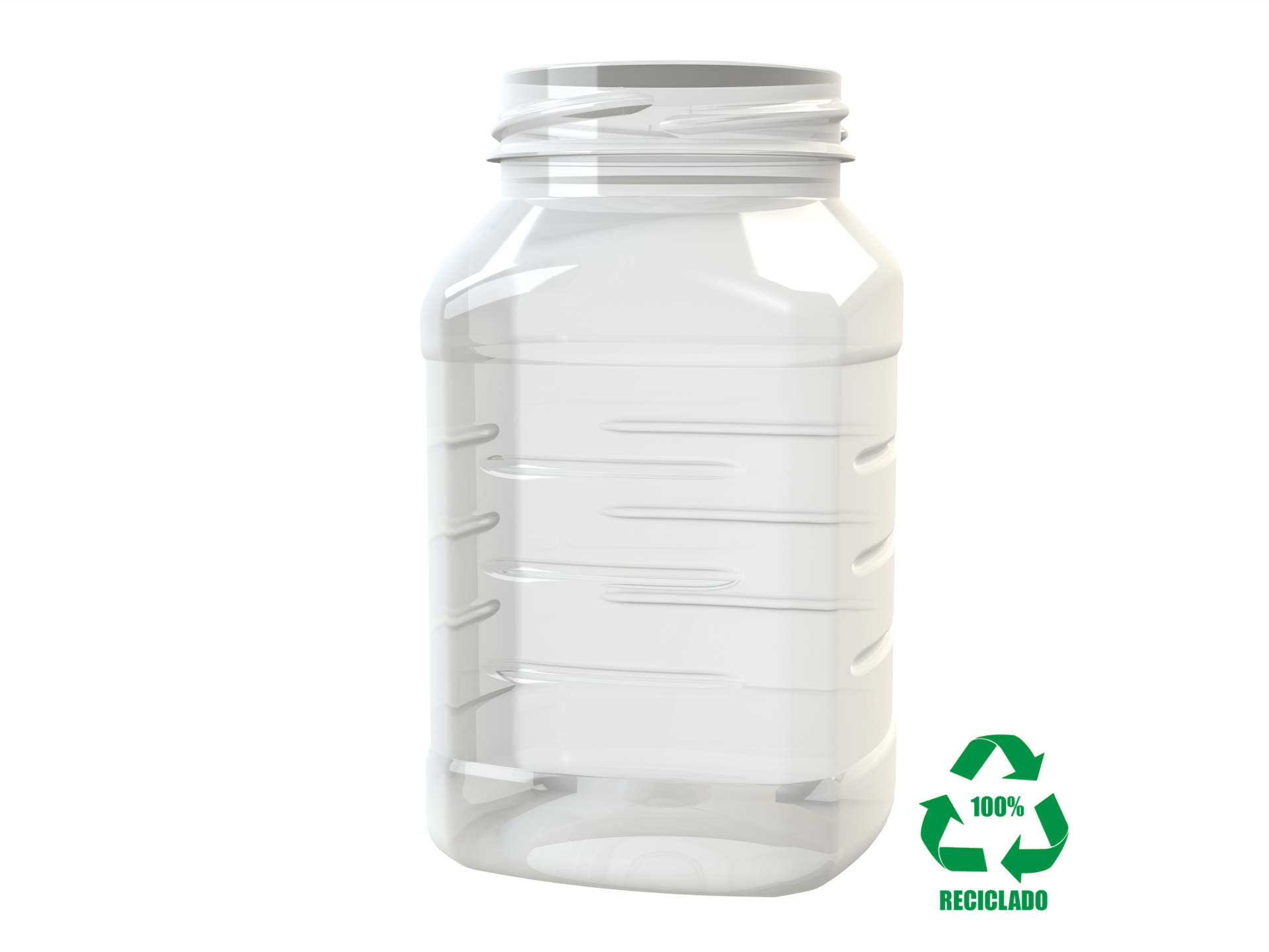 Frasco rPET(100%) 400ml M1 quadrado B/L 58 c/ribs